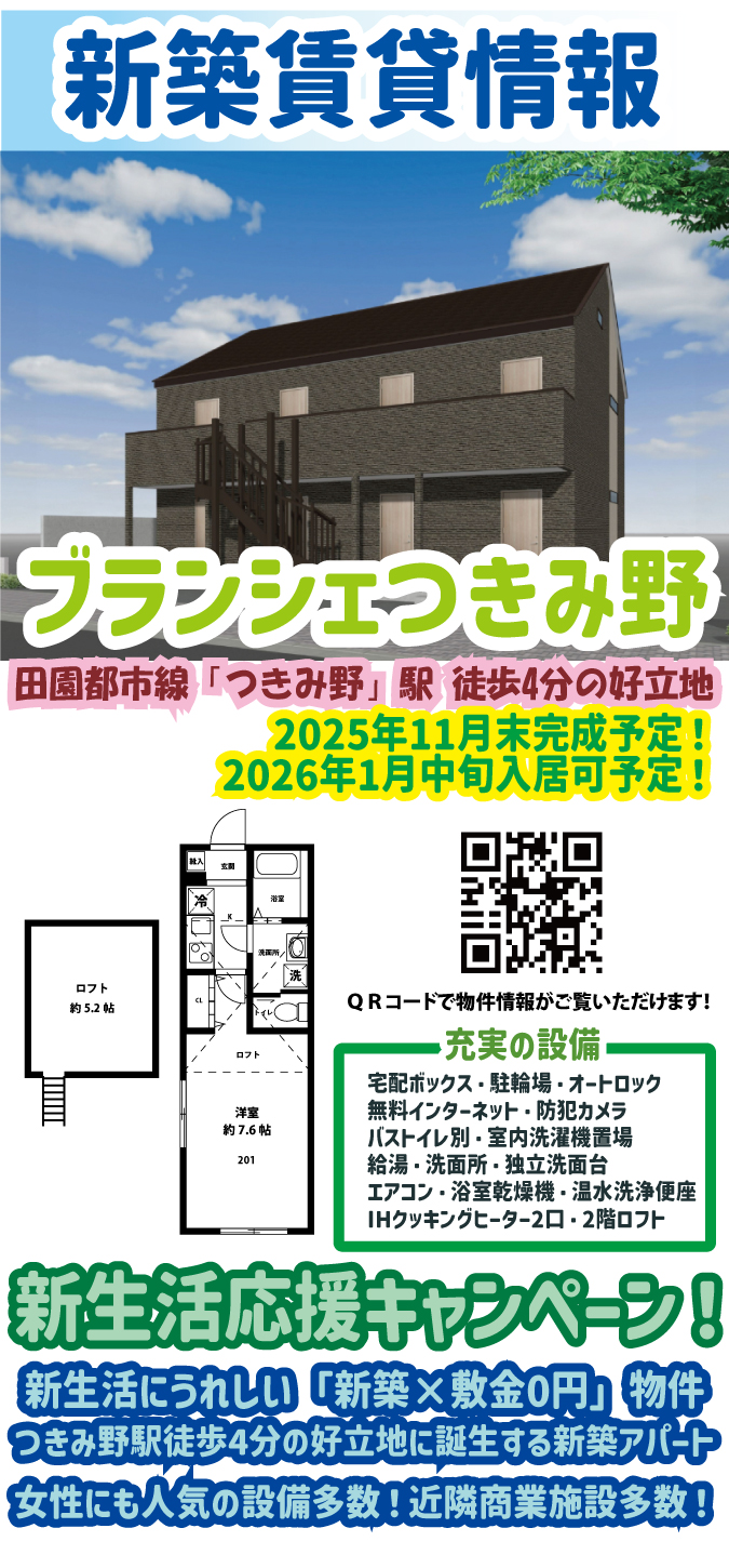 - 新築賃貸アパート・1K+ロフト24.51平米・田園都市線つきみ野駅徒歩4分
